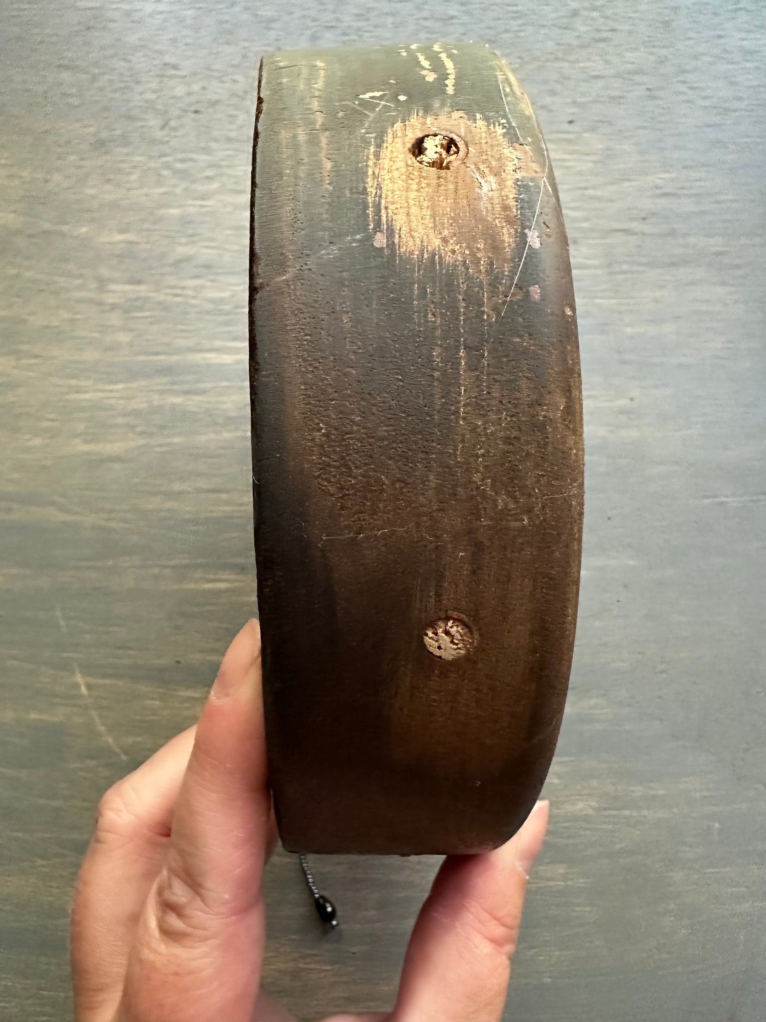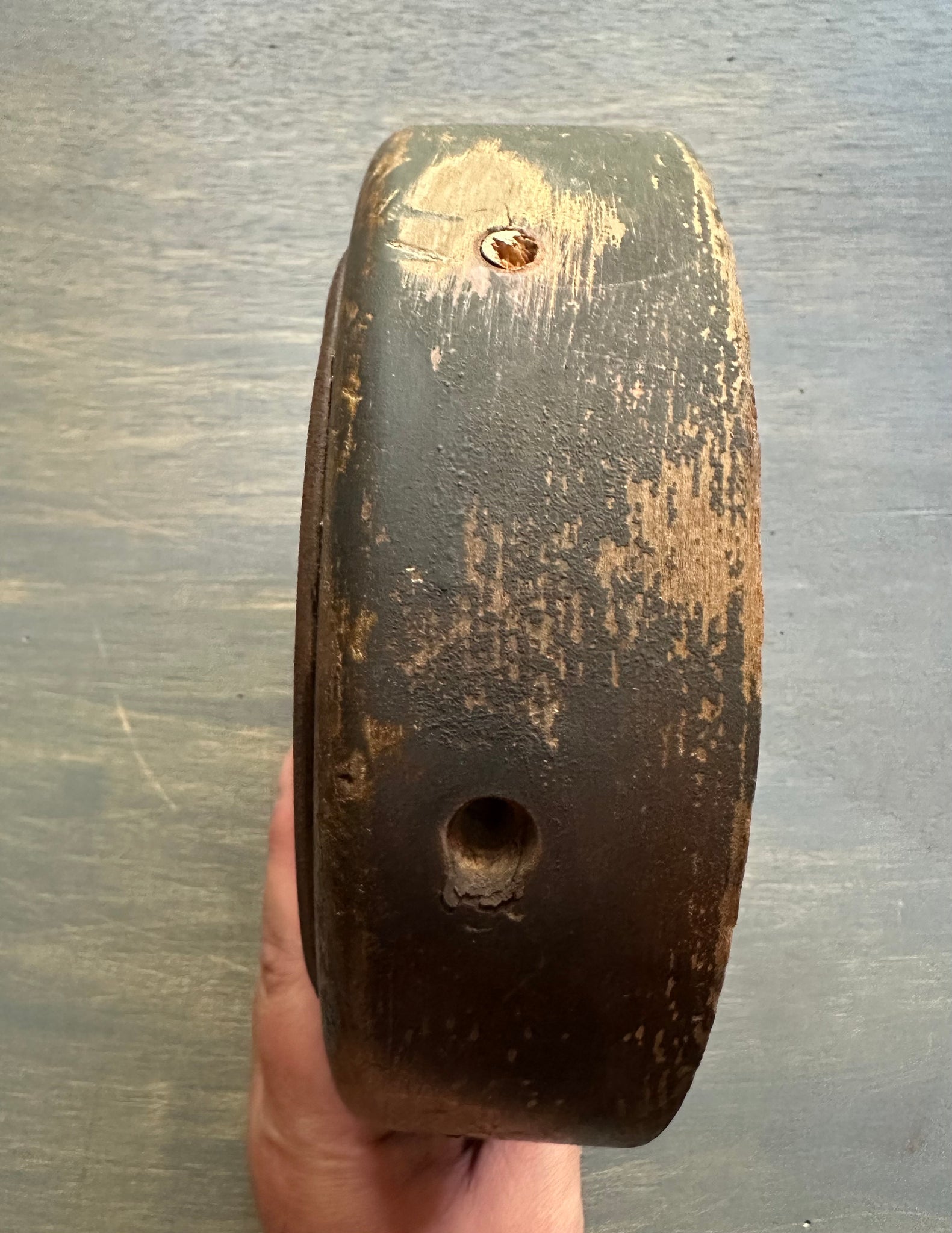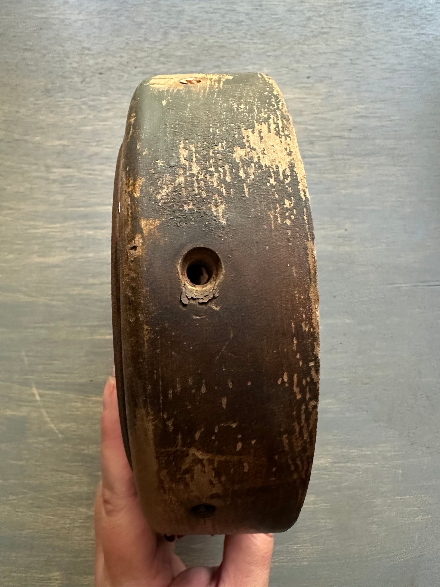 Handmade piece set in a cracked and worn vintage wooden frame. Imperfections are to be expected. Please examine the images closely and read the full description to avoid disappointment as returns are not accepted.