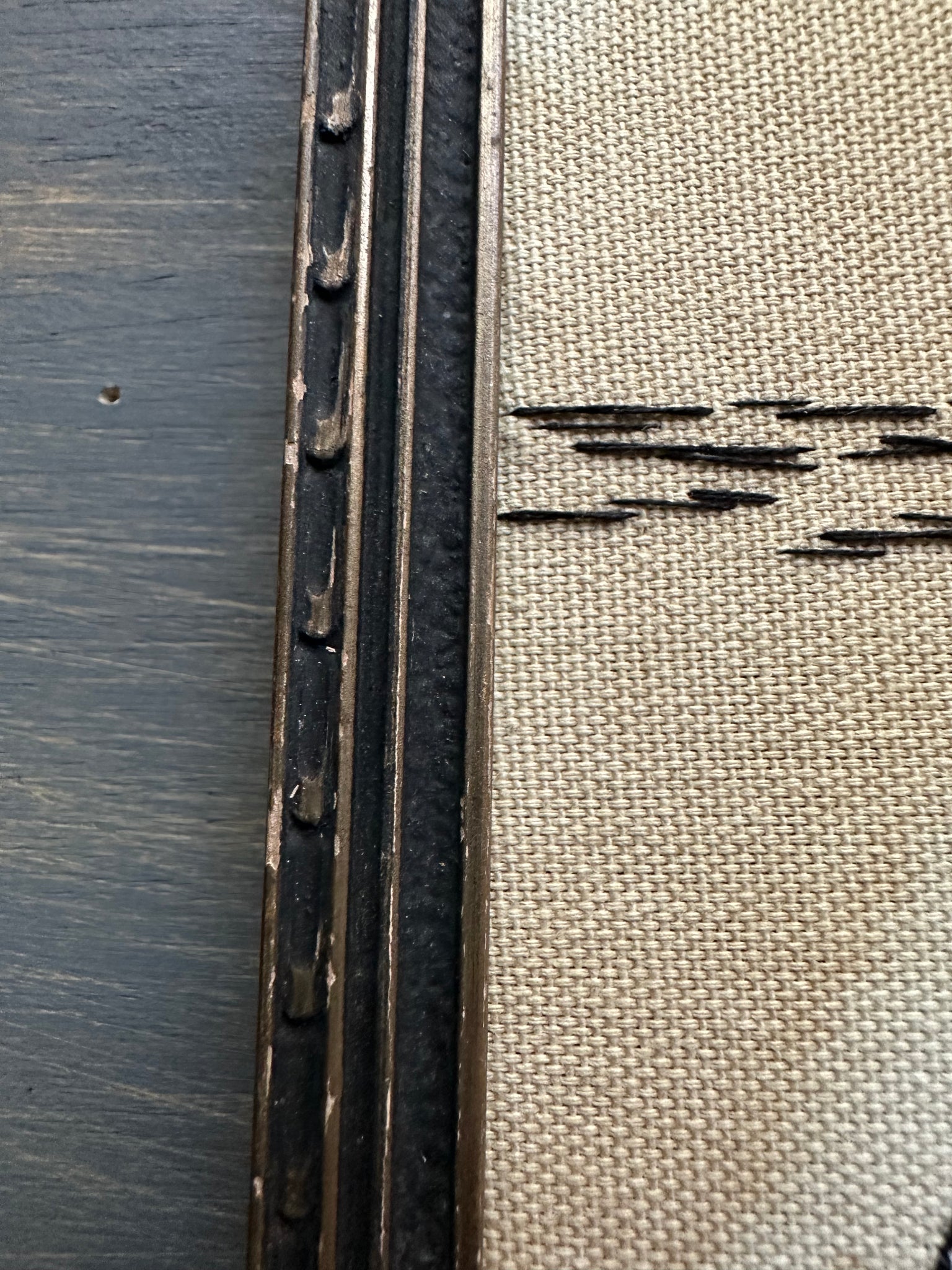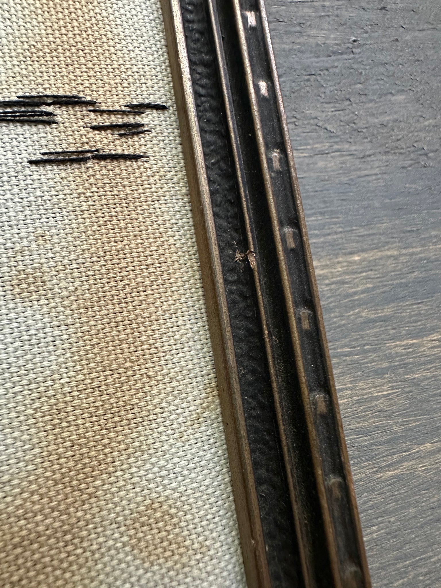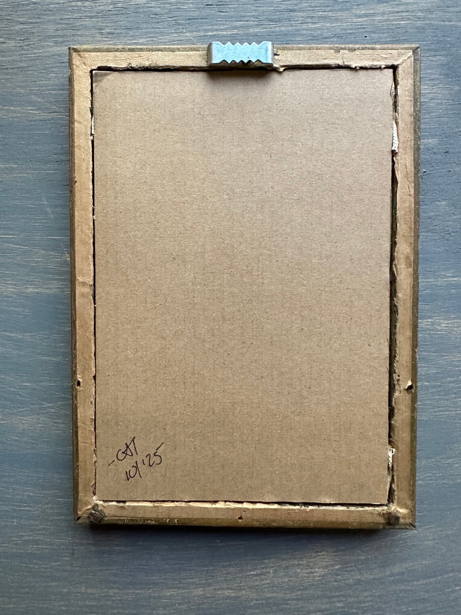 Handmade item set in a worn vintage frame. Imperfections are to be expected. Please examine the images closely and read the full description to avoid disappointment as returns are not accepted.
