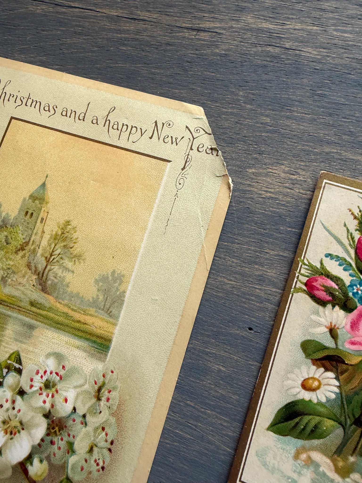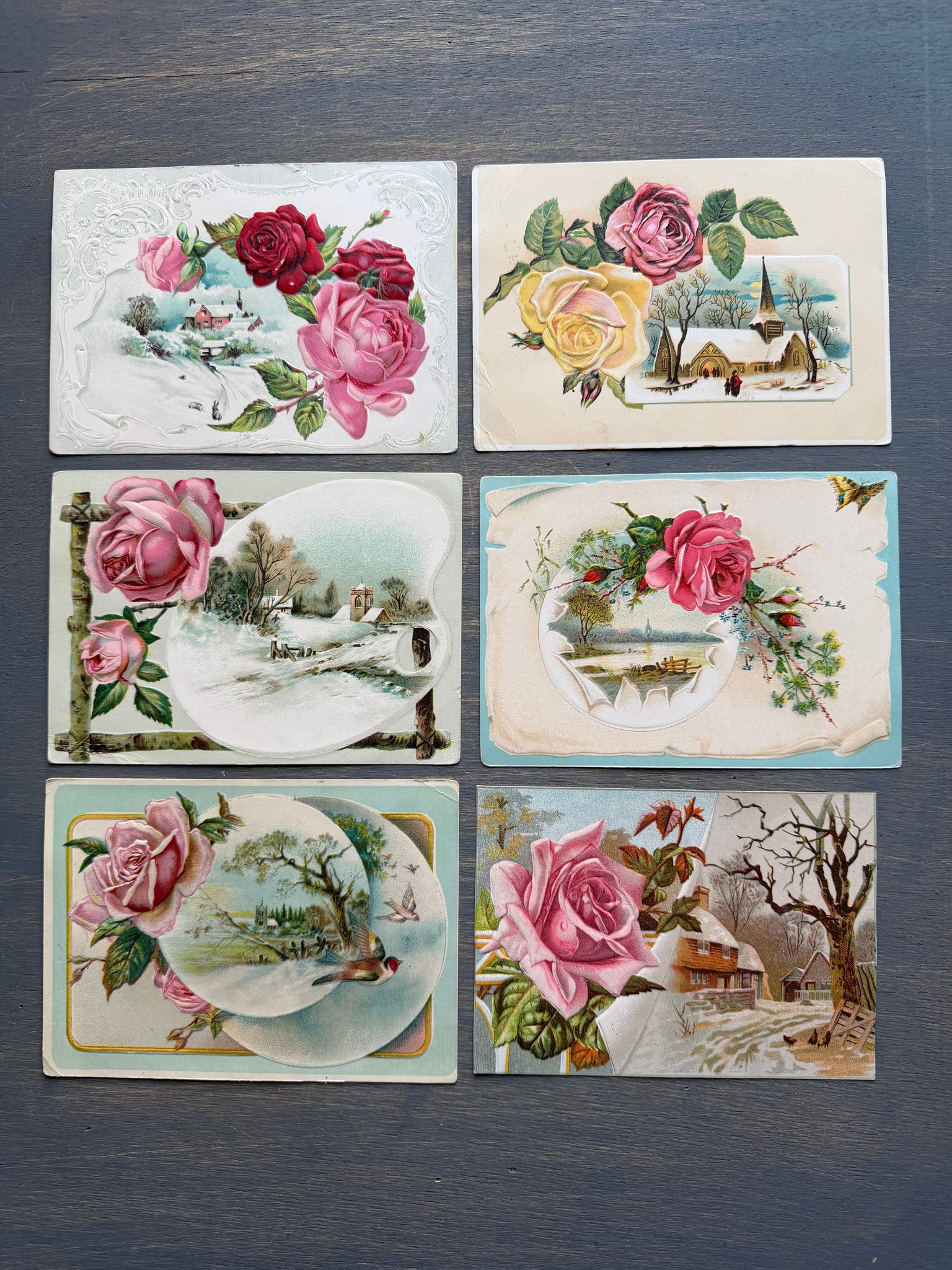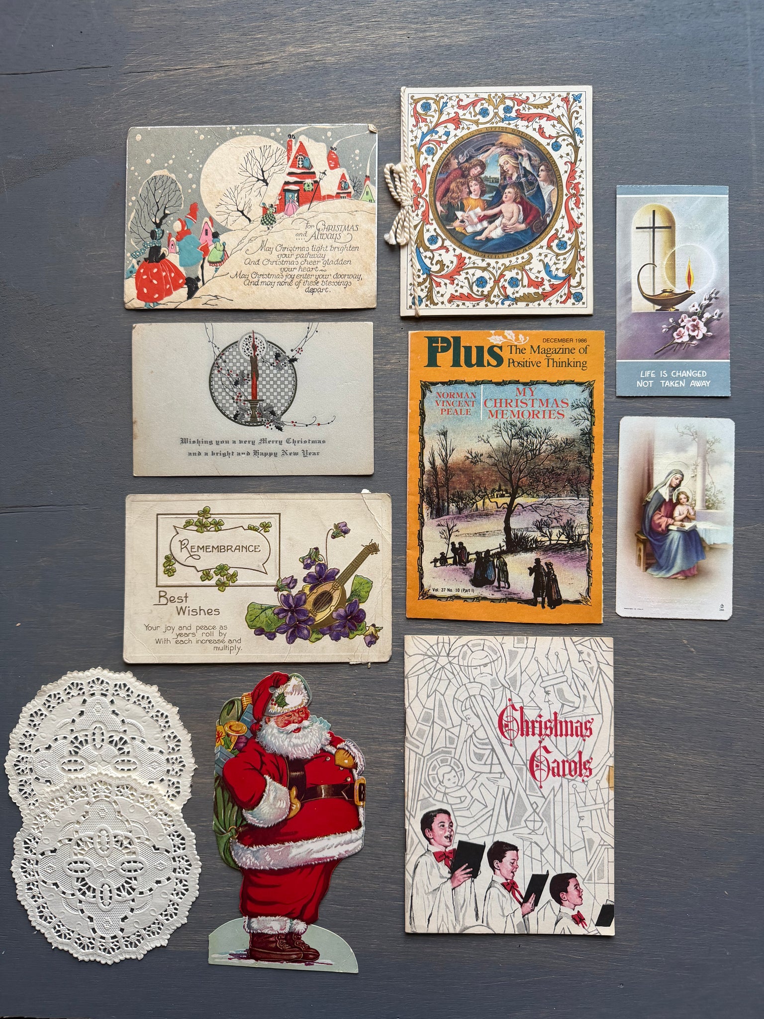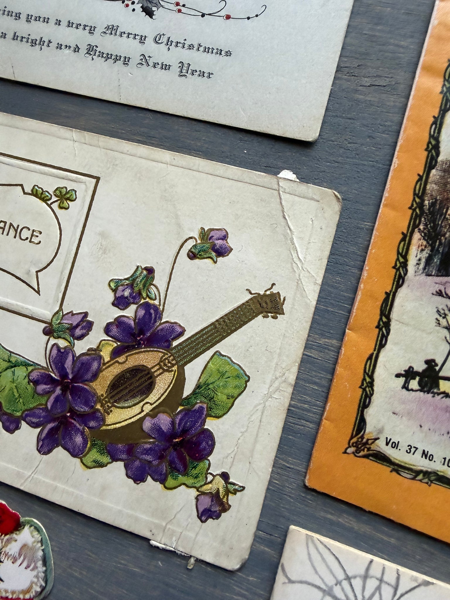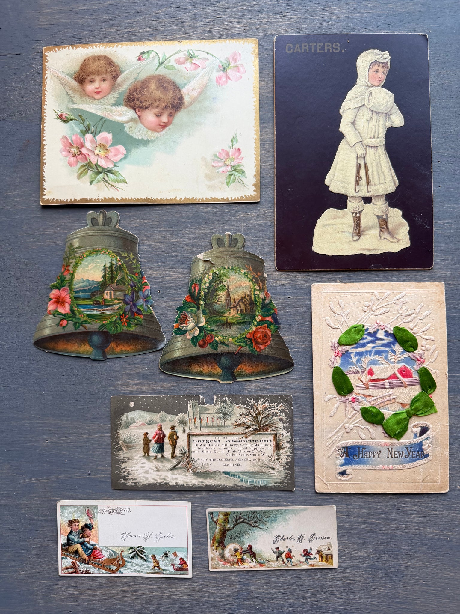 A lot of antique and vintage winter and Christmas themed ephemera. Antique/Vintage paper ephemera is old and worn, they are torn, creased, stained, discolored and aged. What you see is what you get, please examine the images closely.